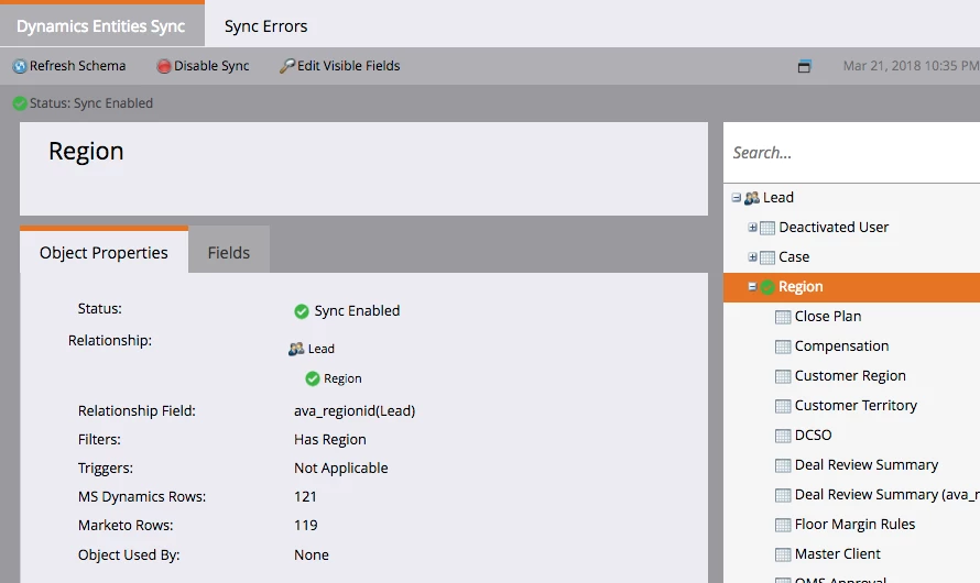 Is it possible to display the MS Dynamics custom entities in the Person Details view of Marketo ?