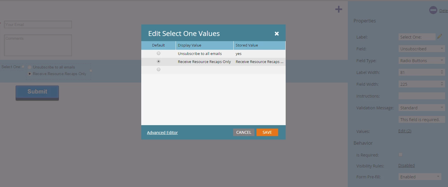 On my Unsubscribe form, i am adding in a check box to allow users to either Unsub from our emails or just receive monthly recap emails.