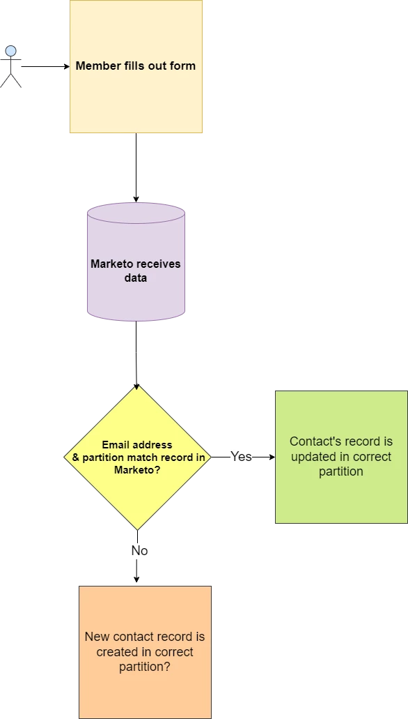 The problem we are seeing is that if someone fills out the form and uses an email that already exists in Marketo but in a different partition, the form fillout gets attributed to that existing record in the other partition and they do not get opted into SMS messages because they do not exist in the dedicated partition where the campaign is run.