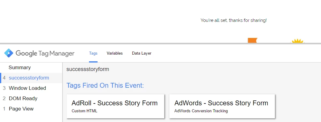 Here is the GA event code I want to insert onsuccess as well. I am not a developer so I'm not sure how to add it to the code above. Can I get some help turning this into working form code? Much appreciated.