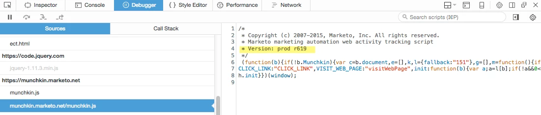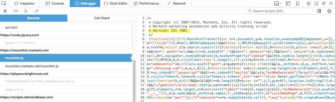 We've noticed an inconsistency of Marketo being able to track known click behavior on our site recently (and is contributing to the inability of our trigger campaigns from firing). When running the debugger in Firefox, we noticed two instances/versions of Munchkin present:
