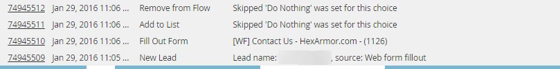 Below you will also see an instance of a known leads activity log:
