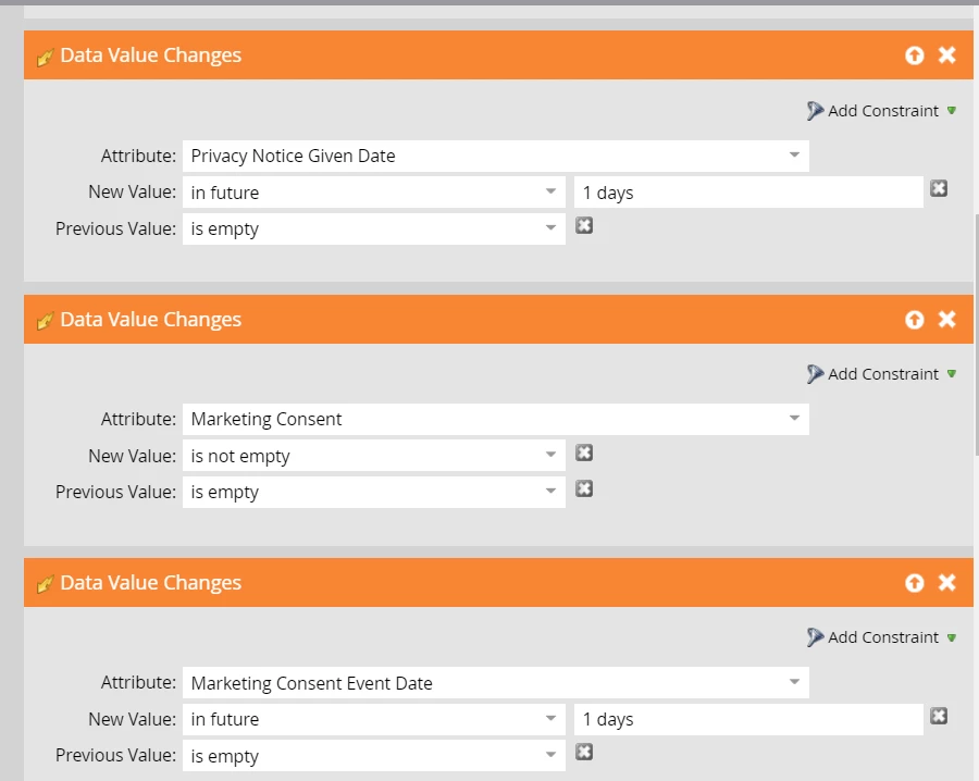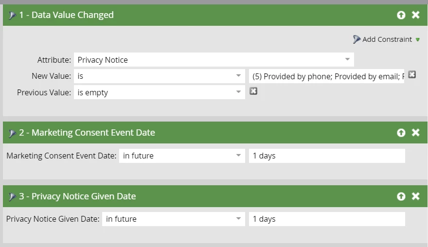 Objective: I need to create a campaign which accepts future date in "Marketing Consent Event Date" and "Privacy Notice Given Date" fields.