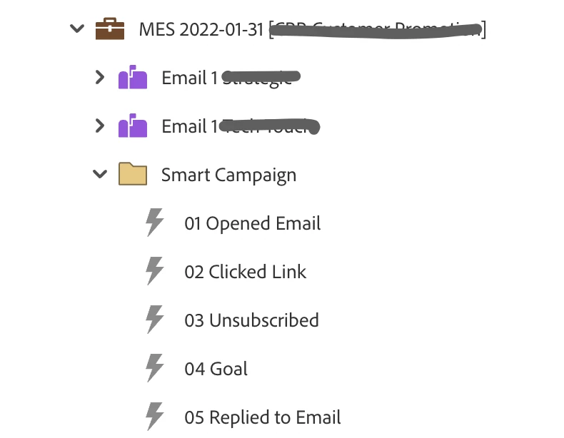 3. Can I have smart campaigns that update statuses for the Main campaign based on the performance of individual emails, outside of nested programs? (like shown on the image)