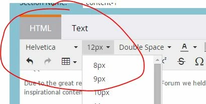 Also, for example we use a 13px font (which is not an option in the drop down list ) so now if out users change the font size, we cannot fix this without going into the code and changing it manually.