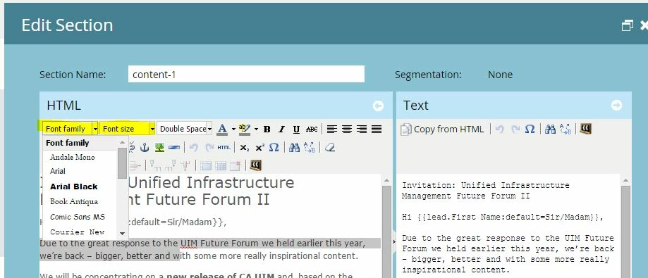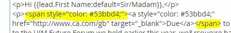 Now we have to highlight the text and change the font colour, resulting in this un-necessary text. It isn't killing the email but it's not needed and now takes me twice as long.