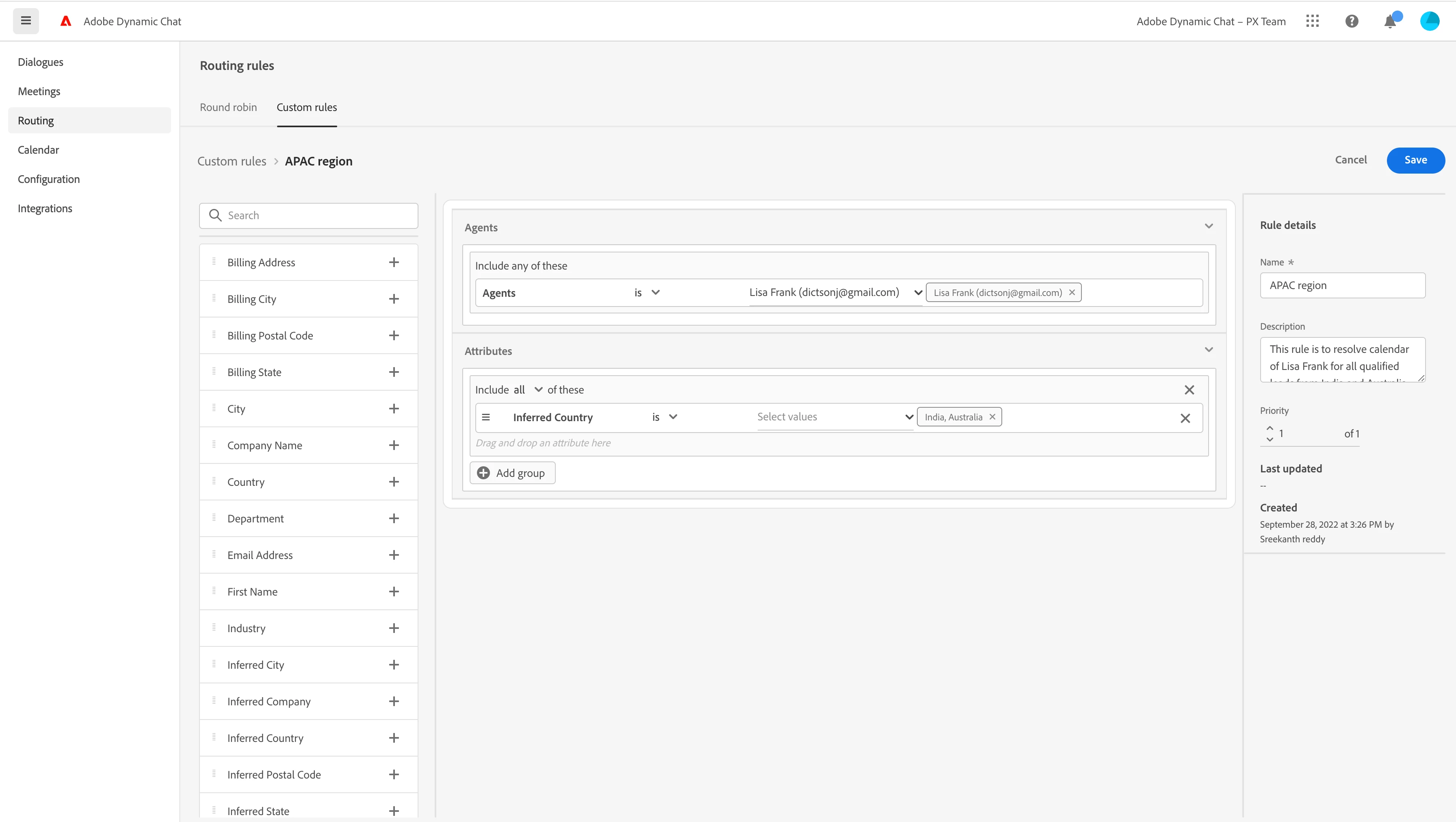 - Similar to dialogues, there is a priority assigned to each rule, in case a lead get qualified to multiple rules based on the priority of the respective routing rule an agent's calendar will be resolved