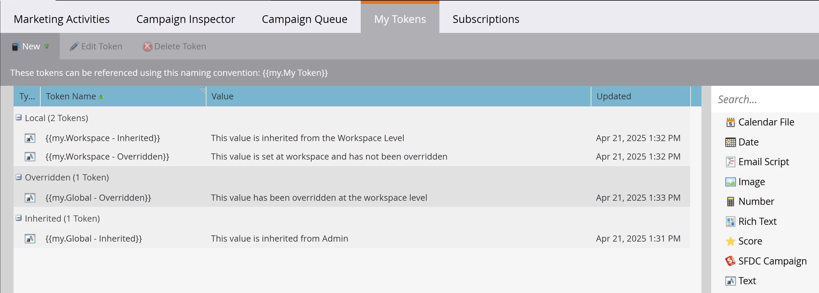 Global and Workspace My Tokens