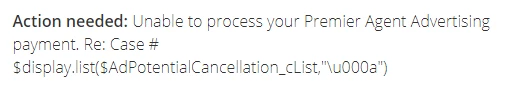 List values: ${display.list($AdPotentialCancellation__cList,"<br>")}