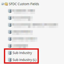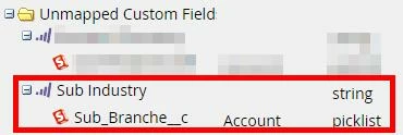 After the first sync the lead sub industry field shows up in Marketo and is filled with data, but it is not mapped to the already existing (SFDC account) sub industry field which was created during the initial sync.