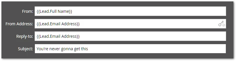 Ideally, the editor wouldn’t even let you try to use the lead’s own Email Address as the From. But it’s impossible to detect all the methods of using that variable[1], so you’re trusted to do the right thing.