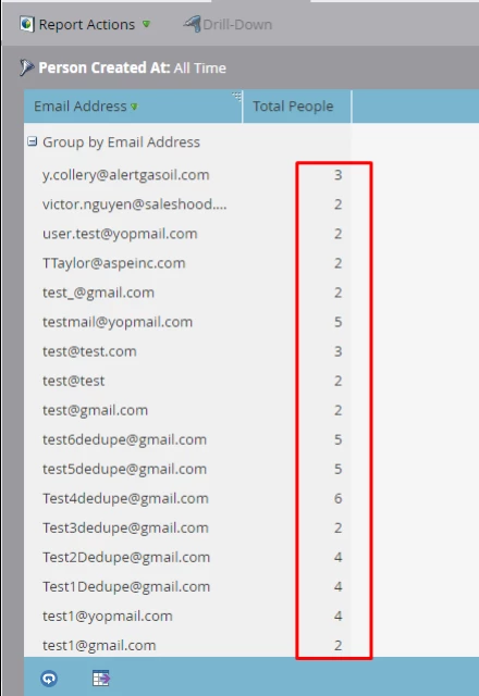 Is there an easy way to find out how many times a lead/person is duplicated in other words abc@yahoo.com = 6 records