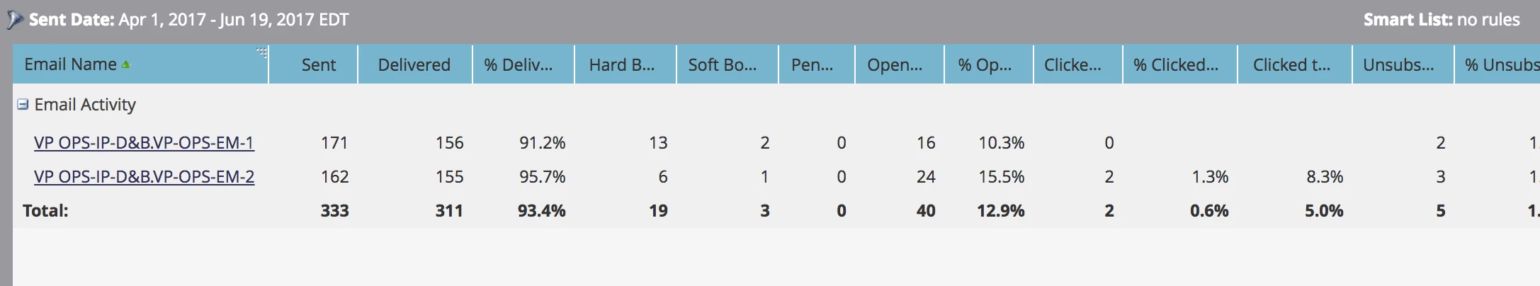 I'm looking for a way to have a consolidated email report like the one you get with email campaigns, but for nurture campaigns. Right now all I've found is creating a separate smart list for each criteria I want to look at. Is there something I'm missing?