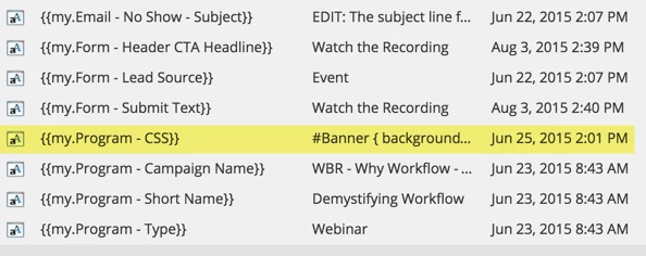 And when you need finer tuned control and the ability to overhaul CSS on the fly, program {{my.Tokens}} are what you’ll want to use. Consider putting a few placeholder tokens in <style> </style> tags in your header for any program or folder-specific CSS editing you might want to do.
