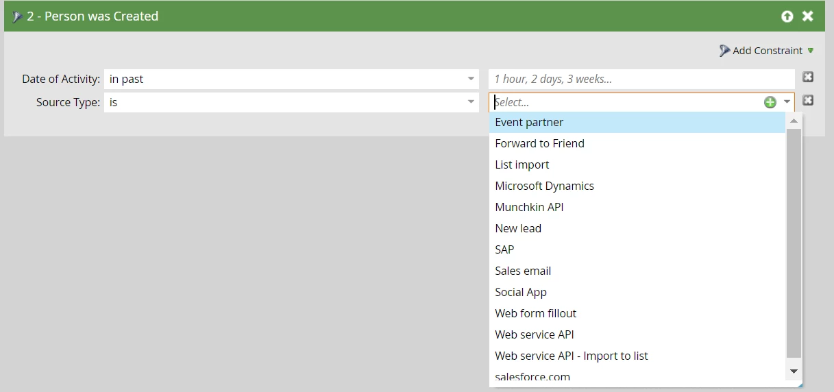 Also, "Person Source" field is not populated automatically and you would have to set up smart campaigns based on your ingestion sources. However, for the form fills, you can also add Person Source field as a hidden field on the Marketo forms to capture the apt values. Let me know if this answers your question or in case if you need more details!