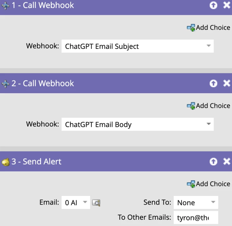- One webhook to populate the subject line field