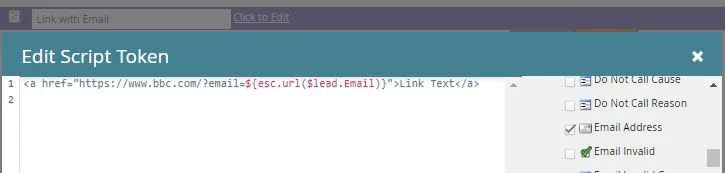 into the url - all following my non-Marketo LP. (using bbc as example) - bbc.com/${lead.Email} however here I lose the email address in the url. {{lead.Email}} returns an error saying it doesn't exist. While bbc.com/{lead.Email} returns the following URL: