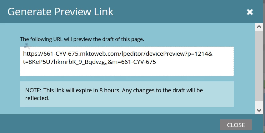I am trying to share edits to a LP with a colleague that does not have Marketo access. I have not approved the page because we can't push it live until it's reviewed. How can I share the edits without approving? The URL shows the approved version.