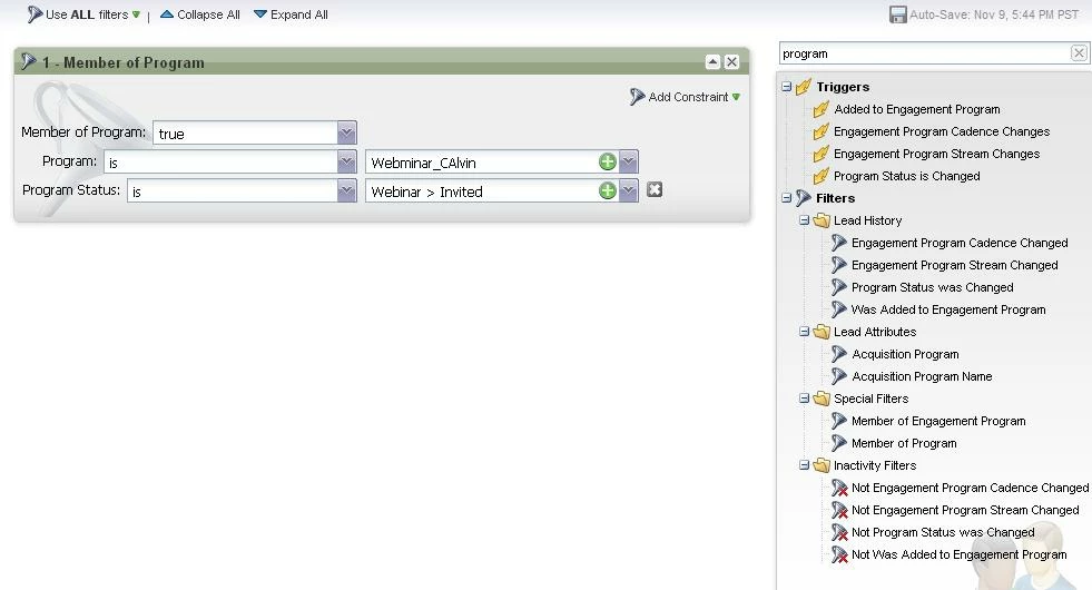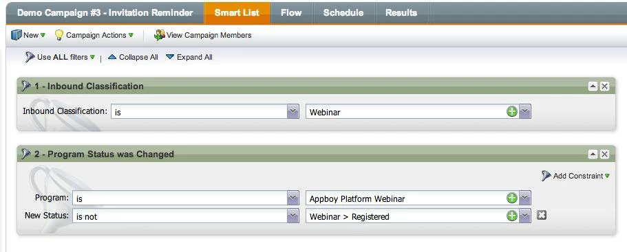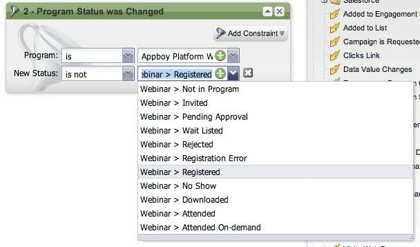 Then, if they fill out a form on a landing page, I mark them as Program Status > "Webinar - Registered". Seems good, too.