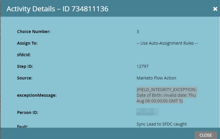 We have been occasionally seeing some bizarre occurrences of people submitting our forms and their date of birth somehow getting confused, then rejected by Salesforce during sync. Here is an example: