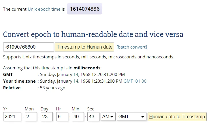 Form Submission original data, notice the value "-61990768800" which i take it is epoch format.