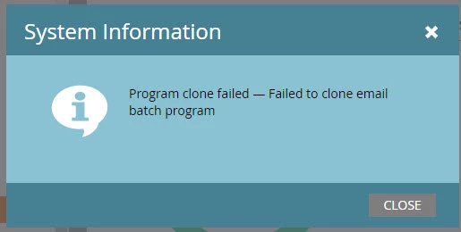 Every month I clone an email program to update for the new month - it's a newsletter we do and I have never had trouble cloning this in the past. However, this month as I try to clone the program I keep getting a message that reads "Program clone failed - Failed to clone email batch program."