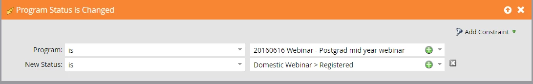 I have a second campaign that is a "Program Status is Changed" trigger, with the constraint New Value: "Registered".
