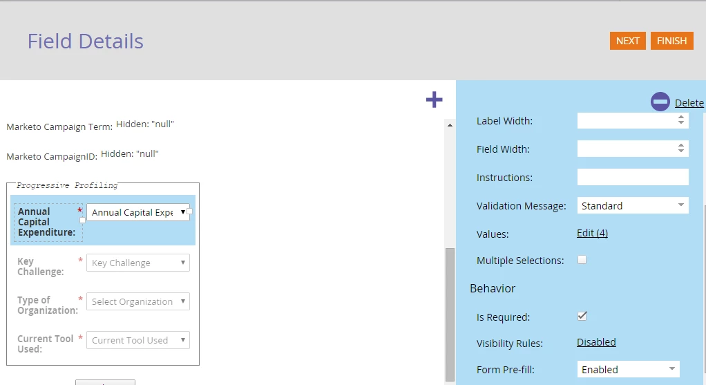 I'm trying to set up progressive profiling in forms 2.0 - we had successfully done this in the old forms but I want to set the order of the progressive fields and it does not seem like we are able to do so. For example, first visit show 1,2,3 and then second visit show 4,5,6.... In fact, right now, all fields are showing up from the get-go. Any help? Tried searching the community but it's terrible now - impossible to find any information in here. Thanks!