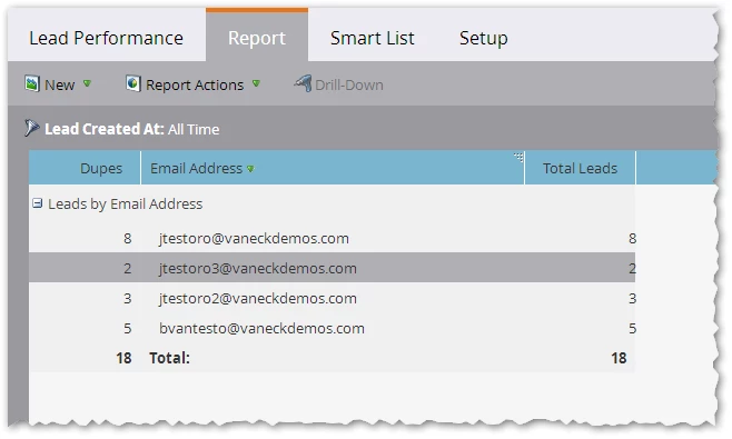 We have duplicate email addresses in our database. Is there any way to pull in a smart list that dedupes- providing the counts for unique email addresses?