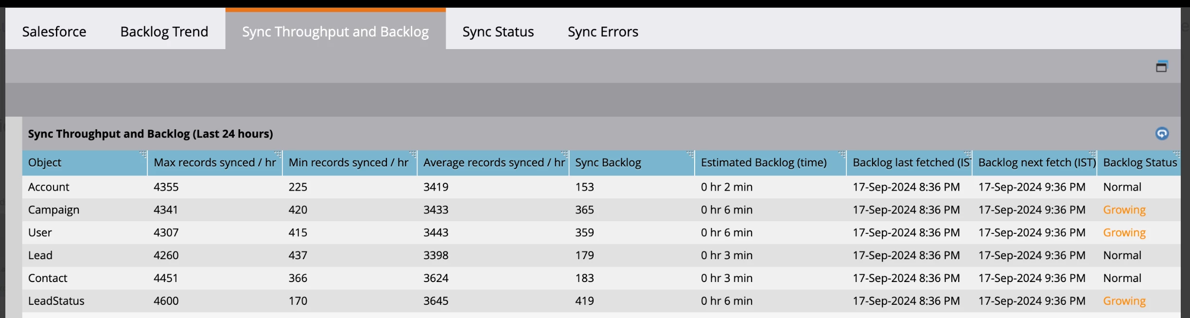 - View synch stats and through-put rates - Customers will now be able to view their CRM sync stats and throughput rates average thresholds in App as a self-service UI