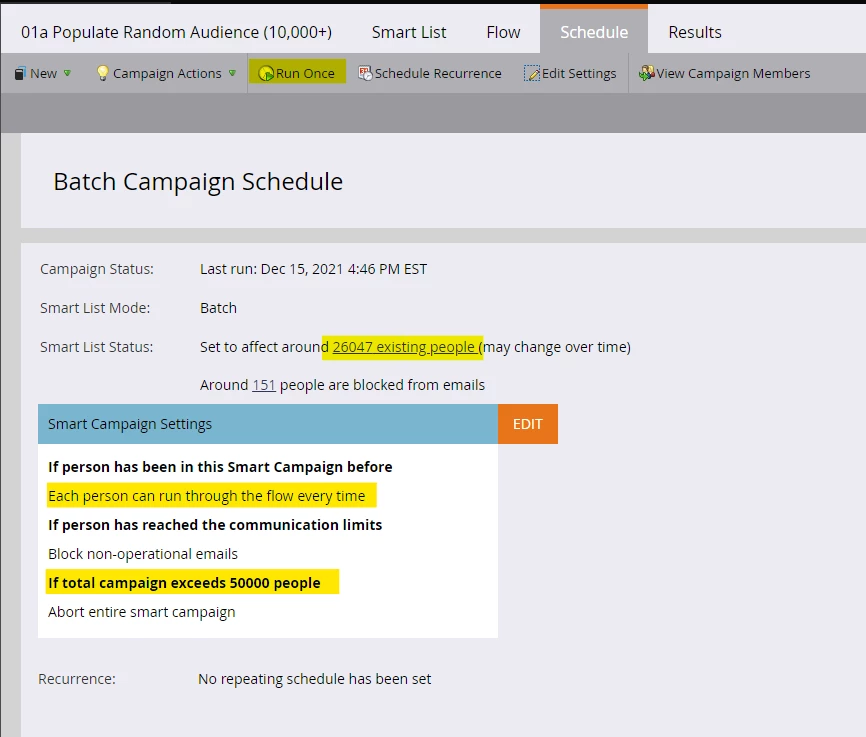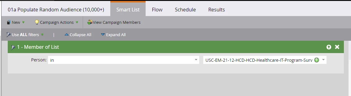 Step 6: Set up the 01a Populate Random Audience (10,000+) smart campaign
