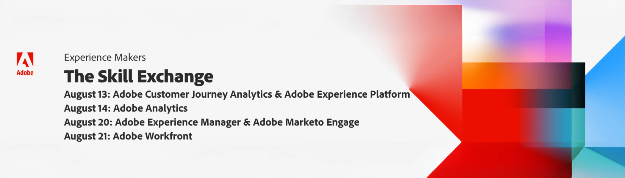 Join us for one of Adobe’s largest digital learning events of the year! Experience Makers The Skill Exchange returns this August for its fifth consecutive year—bringing together Adobe customers, product experts, and solution strategists for two weeks of inspiring and practical sessions.