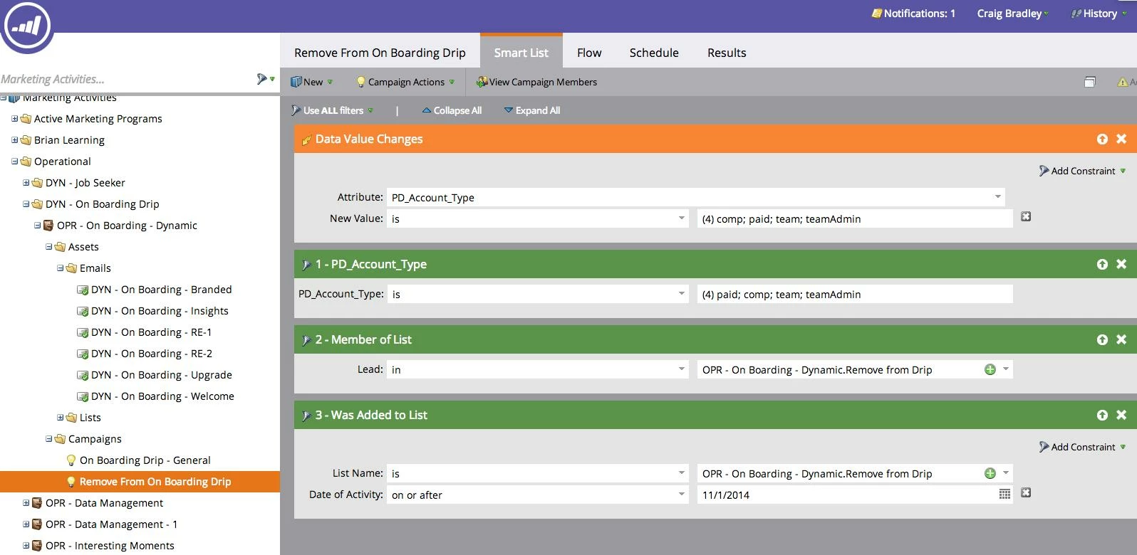 Issue I'm having is that, I have a campaign sniffing out that one, that should remove anyone who's account changes from trial to paid (or comes in as paid...) Basically want to completly remove then from getting any of the your trial is abouto to expire emails....
