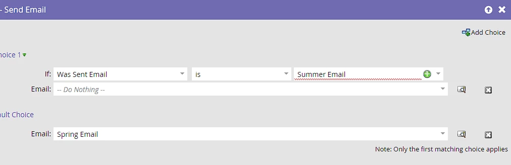 Now, I want to add a suppression to the Spring email to not send if the members in the Spring email campaign received the Summer email at any point.