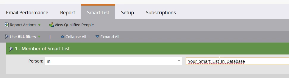 Also, filtering by smart list is currently not available with the Email Performance report, so I am interested in learning how others in the community are addressing this.