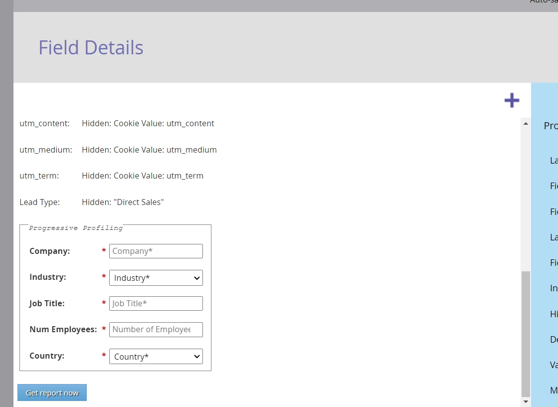 However, the way you're describing it isn't the way I actually observe the form working in practice. I actually see Progressive Profiling working on your site, one new field at a time. However, the Company field does not not appear to be in the ProgPro fieldset — it’s an “always-on” (standard) field outside of the ProgPro block.  Only Industry, Title, Number of Employees and so on are in the ProgPro fieldset. Are you sure you‘re showing a screenshot of form ID 4005 from your instance? Please show the URL bar in another screenshot.