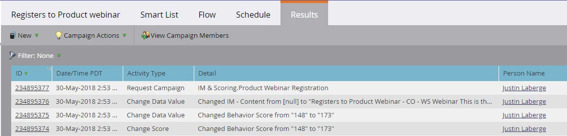 As you can see it’s pretty normal - just an additional request campaign and a second change data value. Make note of the token which was written in that Data Value.
