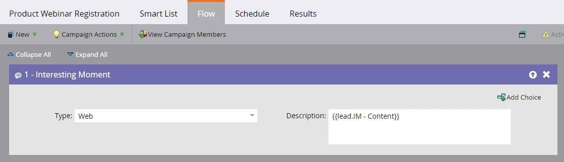 Not much here except the {{lead.IM - Content}} which is the token we just wrote to the account in the previous campaign. Make sure your fields are correct when setting these up. Using a universal interesting moment token would work as well.