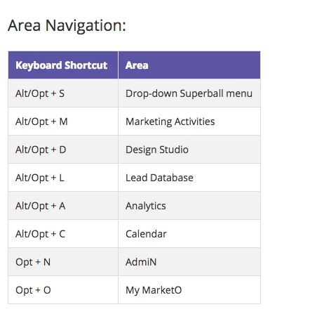III. Shortcuts/Hotkeys for Marketo Product