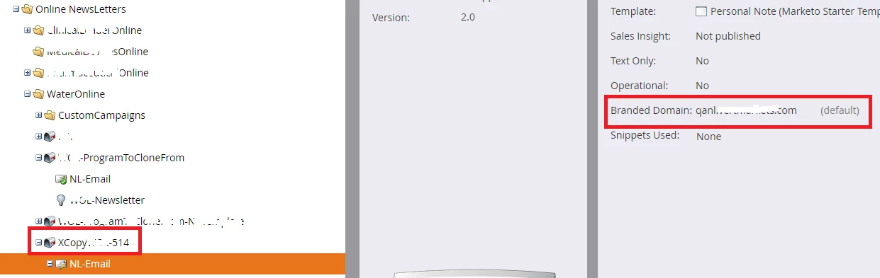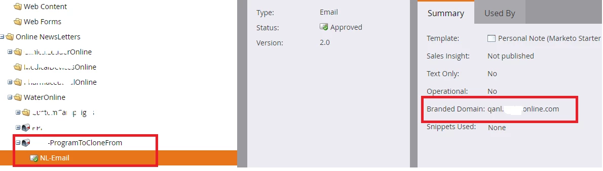 After cloning a program, the Email under the clone looses the Branded Domain attribute which gets the default value.
