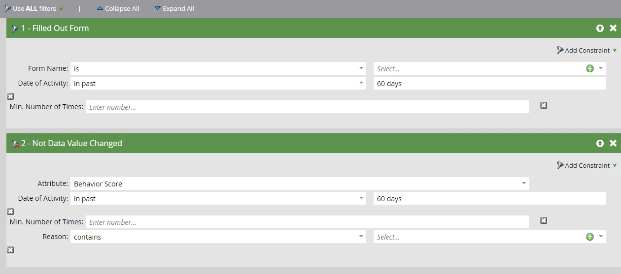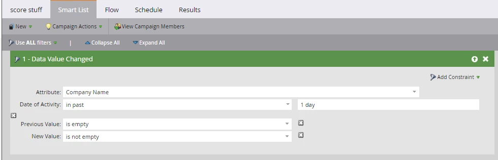 The most pressing issue at the moment is: Some people might have had more than 1 engagement of 10 points since they entered, so I can't do a batch fix for this since everyone would have a different score. There are so many people with different interactions that I'm not sure how to go about this or even how to pull a report of it so I can then put groups into batches depending on how many points they should get. If I could figure out how to pull a report that easily told me how many engagements they should have been scored I think I could come up with a fairly simple solution. For example, if I found 45 people who had 3 engagements that never received 10 points for, I could then create a batch fix campaign that gave them all 30points.