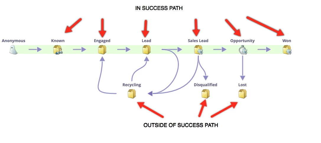 I'm trying to figure out why not all of my stages in my Revenue Cycle Model show up when I look at my success path analyzer. Currently it shows Known > Engaged > MQL > SQL and then that's it. However in my model I have Opportunity and Won as additional stages. Any input on how I can see the data for these stages?