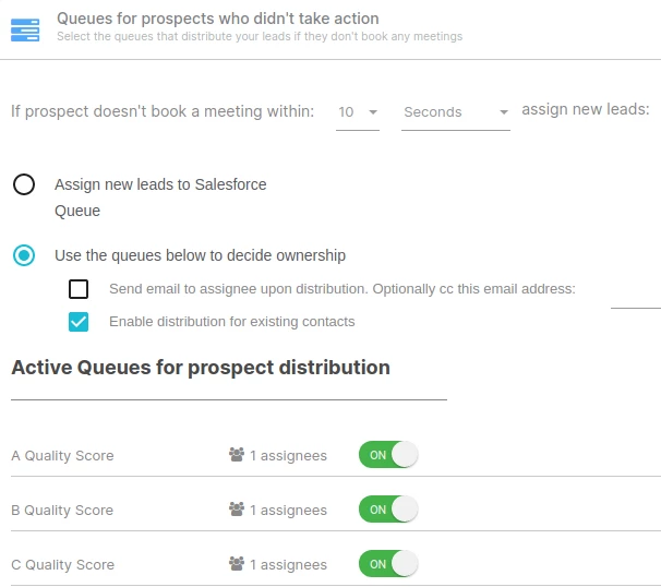 Following on from the example of having an “A Quality Score” queue, an inbound router can then be set up so that any people sent through this router can be distributed to different queues based on their quality score. Once the person has then been matched to a queue, the routing algorithm of the queue and the different assignee weights will determine how this person gets routed to the sales members within this queue.