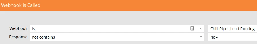 The “Webhook Response Lister” campaign uses the “Webhook is Called” trigger to listen out for anytime the webhook is called and the “Response” does not contain ?id= (see the examples above for why this string can be used for detecting routing failure).