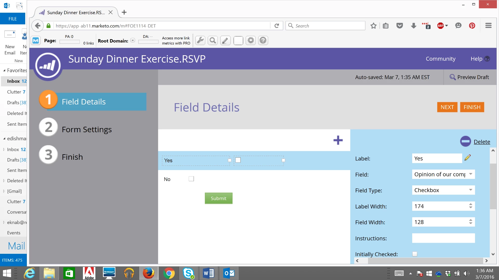 I wanted to know if the forms have the ability to do yes or no RSVP checkboxes and also recognize who replied yes or no. I'd like to create that type of RSVP option and then send a reminder to those who have not yet RSVPd a couple days before the event.