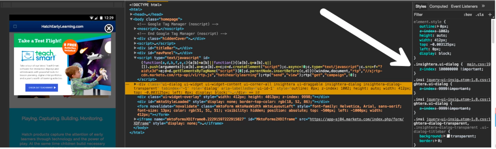 I'm trying to implement an RTP dialog box campaign on mobile devices. The image width and positioning is working fine but the close button is too high up and being blocked from view by the top nav bar.