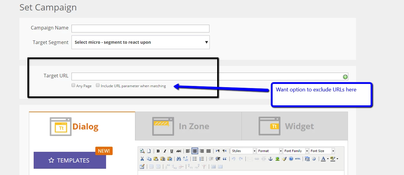 RTP - Exclude Target URLs in Campaigns