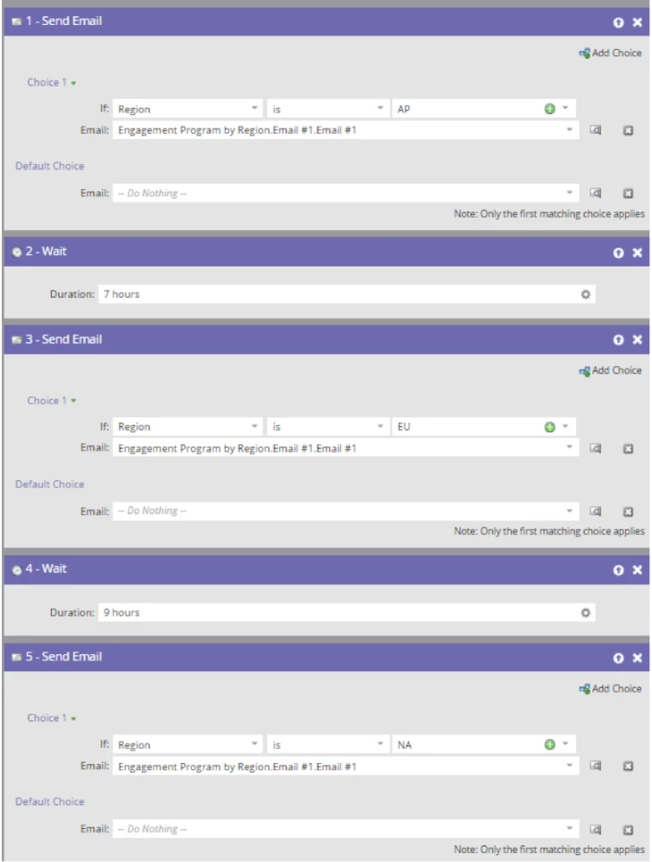Say this is a program/controller nested in a Low Intent nurture stream. Let's call this controller 'Send Email #1 by Region'.