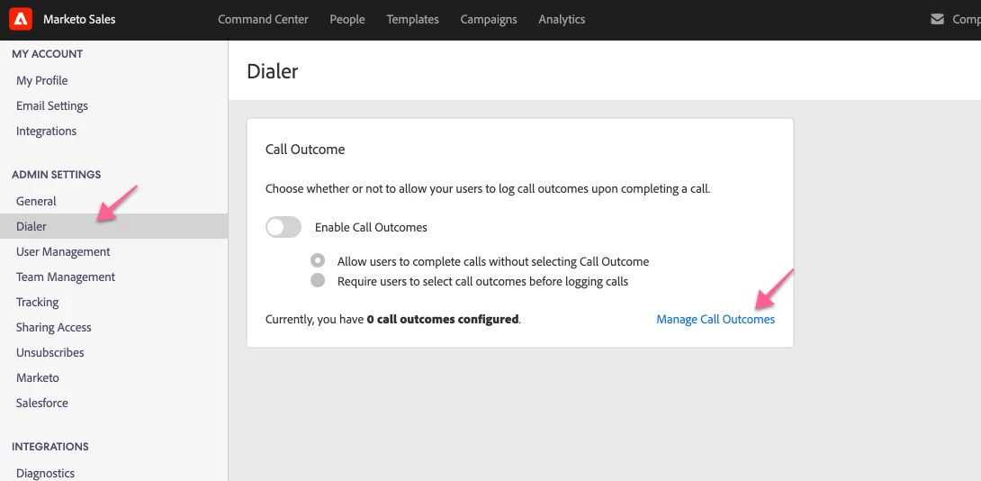 Previously Marketo Sales Connect dialer would map your call outcome list to your subject pick list in Salesforce. By looking up what values exist in your connected Salesforce instance’s task - subject field picklist.