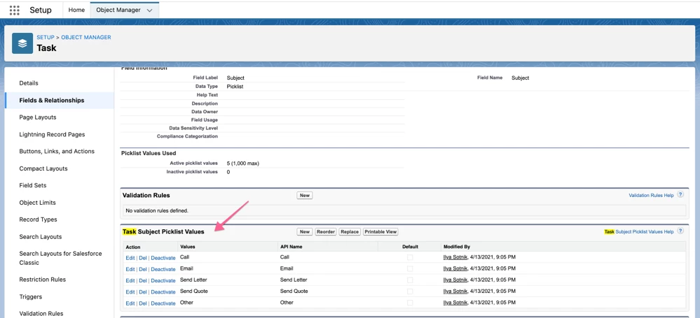 2. Create a new call outcome activity field if you would like to log call outcome information to Salesforce.